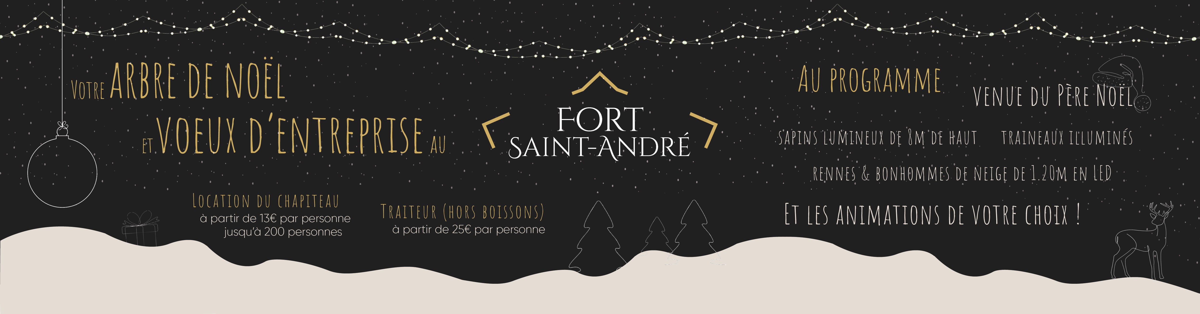 Si vous êtes à la recherche d’un cadre original pour votre évènement professionnel près de la Suisse, le Fort Saint-André à Salins-les-Bains est le lieu qu’il vous faut ! Que vous comptiez organiser une formation, une journée d’étude ou une réunion de direction, nos espaces se transforment au gré de vos besoins et de vos envies. Nous disposons de plusieurs salles allant de 20 à 200 personnes, équipées (voir notre brochure). En fonction de la saison, nous pouvons proposer 7 salles différentes (incluant le chapiteau de 300 m² et la chapelle de 200 m²).